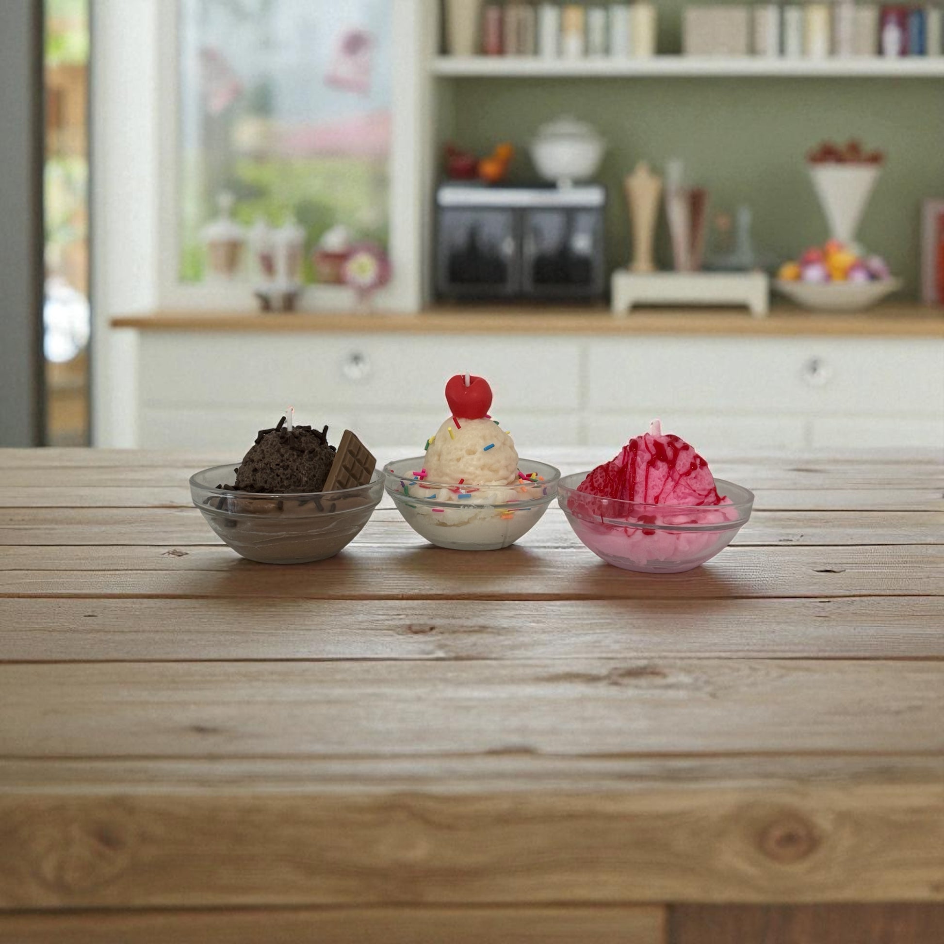 Choose your favorite flavor or collect all three to create your own ice cream parlor atmosphere at home!