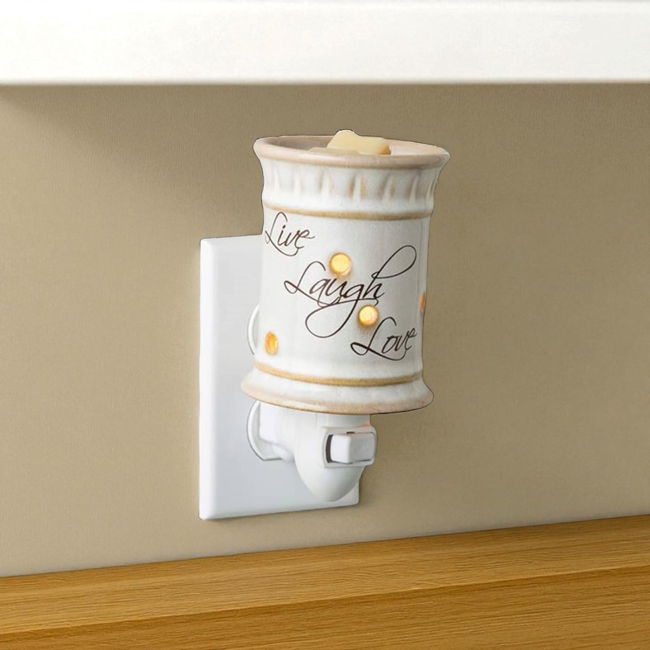 Embrace life's simple pleasures with our "Live, Laugh, Love" plug-in wax warmer! Designed for convenience and style, this compact warmer plugs directly into any wall outlet and features a rotating base for easy positioning. Add scented wax melts to the warming dish and enjoy hours of safe, flame-less fragrance. Ideal for bathrooms, bedrooms, or any smaller space that needs a touch of warmth and inspiration. Experience all the ambiance of a candle with none of the flame!